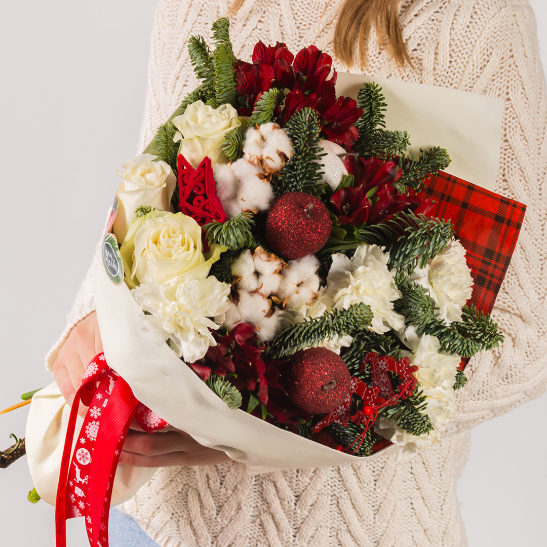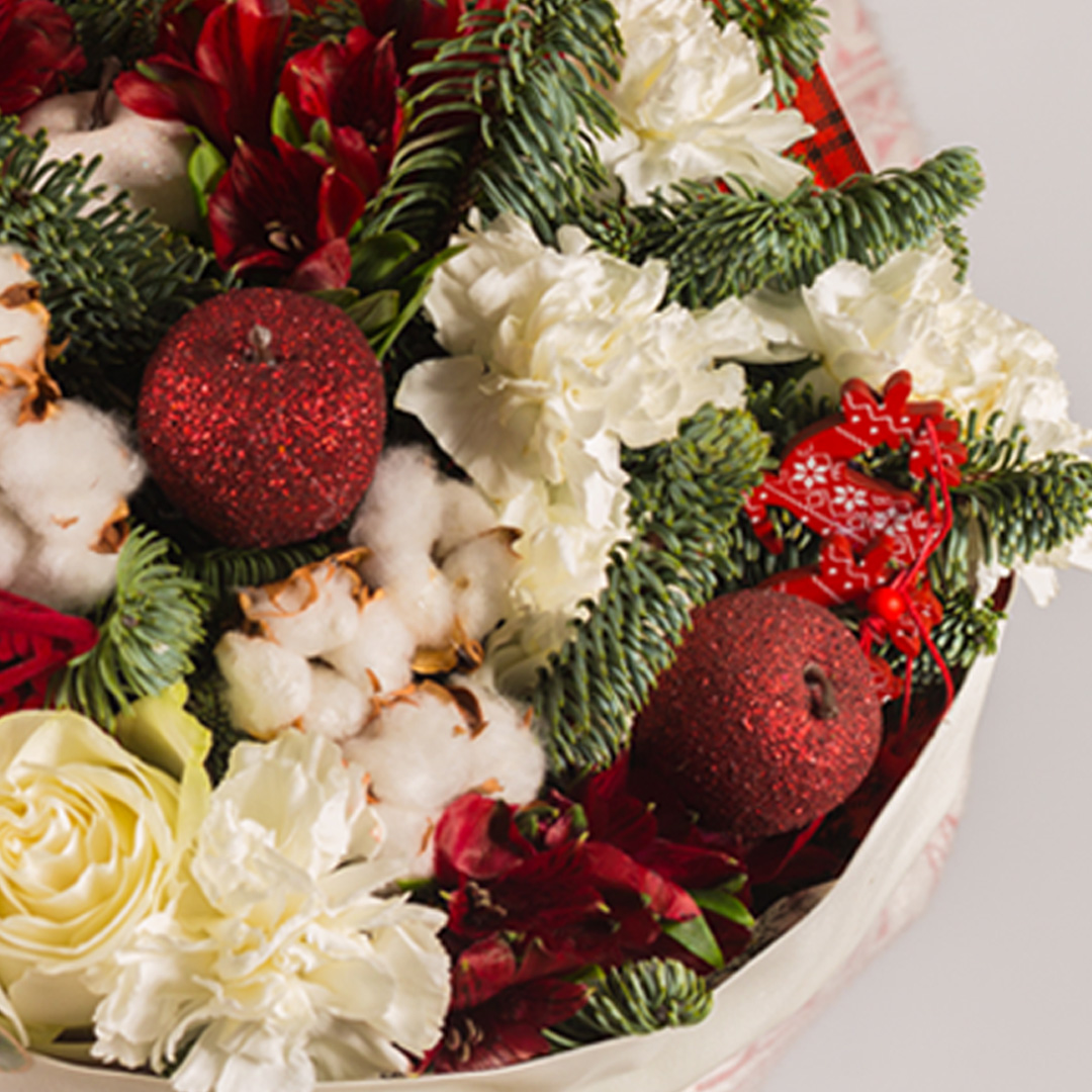 Чтобы цветы и еловые ветки дольше оставались свежими, подрежьте стебли роз и диантусов, поставьте букет в чистую воду и держите его подальше от батарей и прямого солнца. Хлопок и хвоя пихты нобилис долго сохраняют аккуратный вид, поэтому можно смело оформить цветы с доставкой.