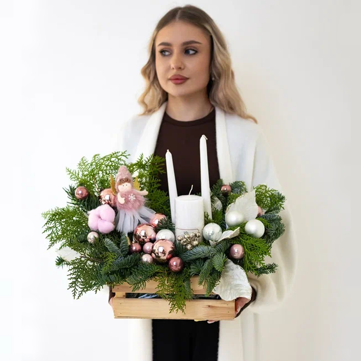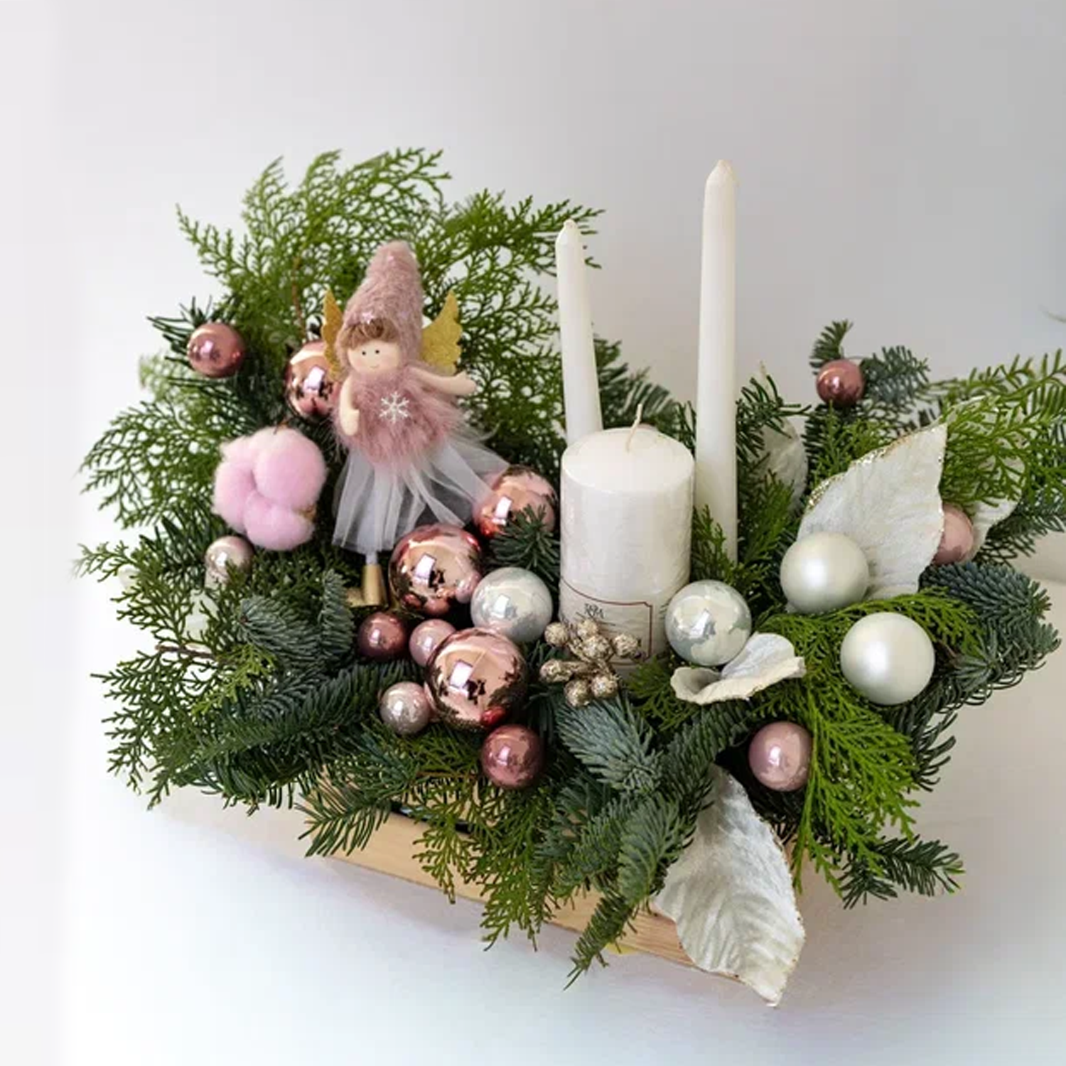 Композиция в ящике из хвои со свечами "Рождественское чудо" N 90869