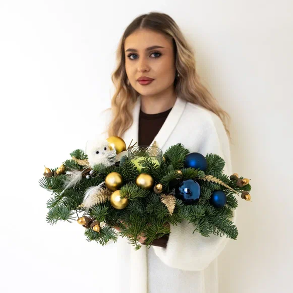 Чтобы еловые ветки дольше радовали, держите композицию подальше от батарей, время от времени слегка подливайте воду под основу. Если хотите обойтись без лишней суеты, оформите эту новогоднюю композицию с доставкой – закажите прямо сейчас, и она будет радовать вас уже сегодня.