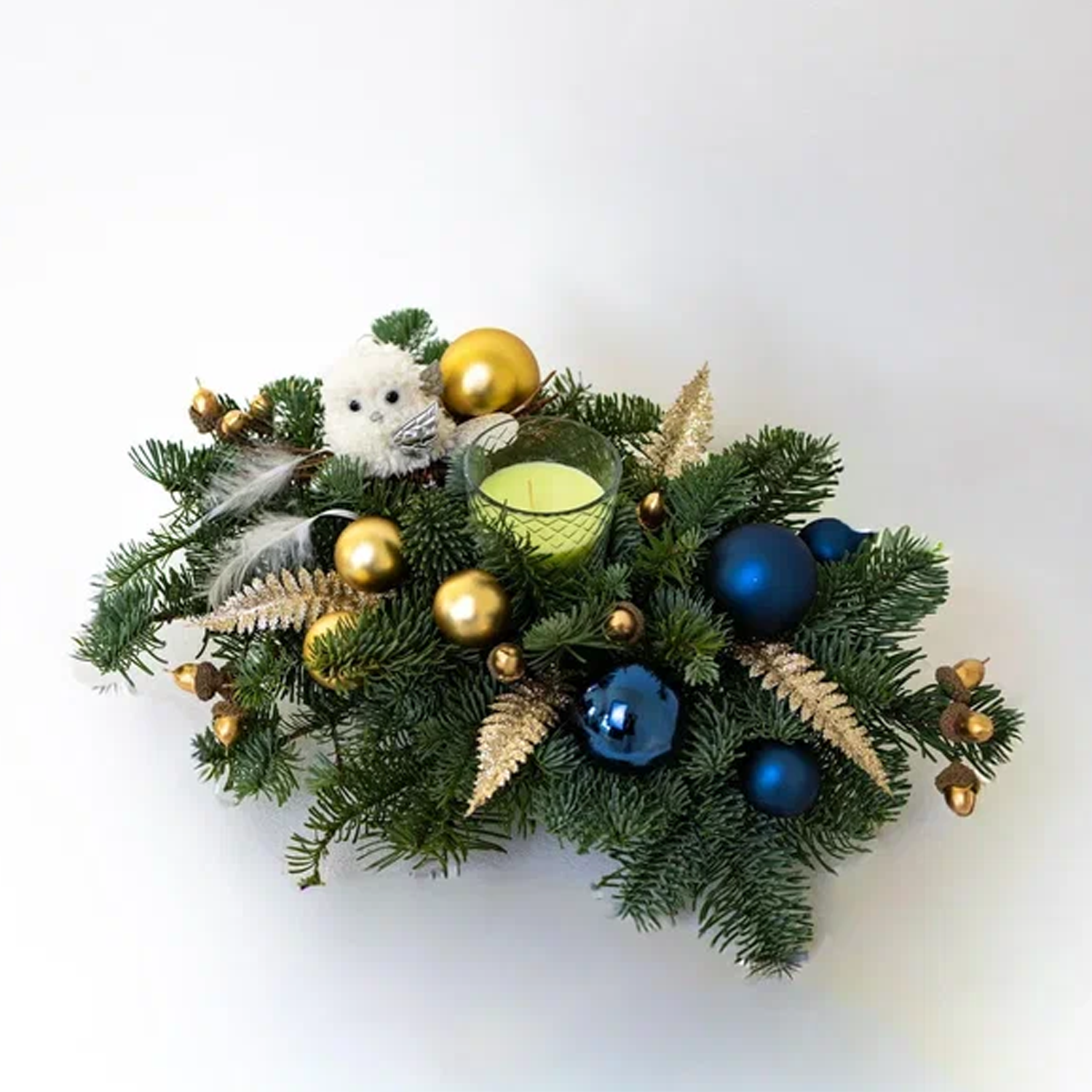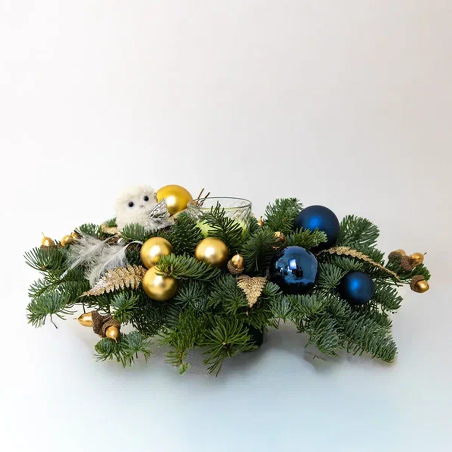 Такую композицию удобно поставить на праздничный стол, комод или подоконник – она не занимает много места, но сразу собирает вокруг себя новогоднее настроение. Это удачный подарок на Новый год для мамы, подруги, учителя или коллеги, а ещё деликатный способ сказать спасибо в формате тёплой зимней благодарности.