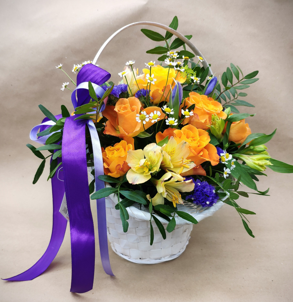 Корзинка "Сказочное лукошко" с розами и ирисами N 7053