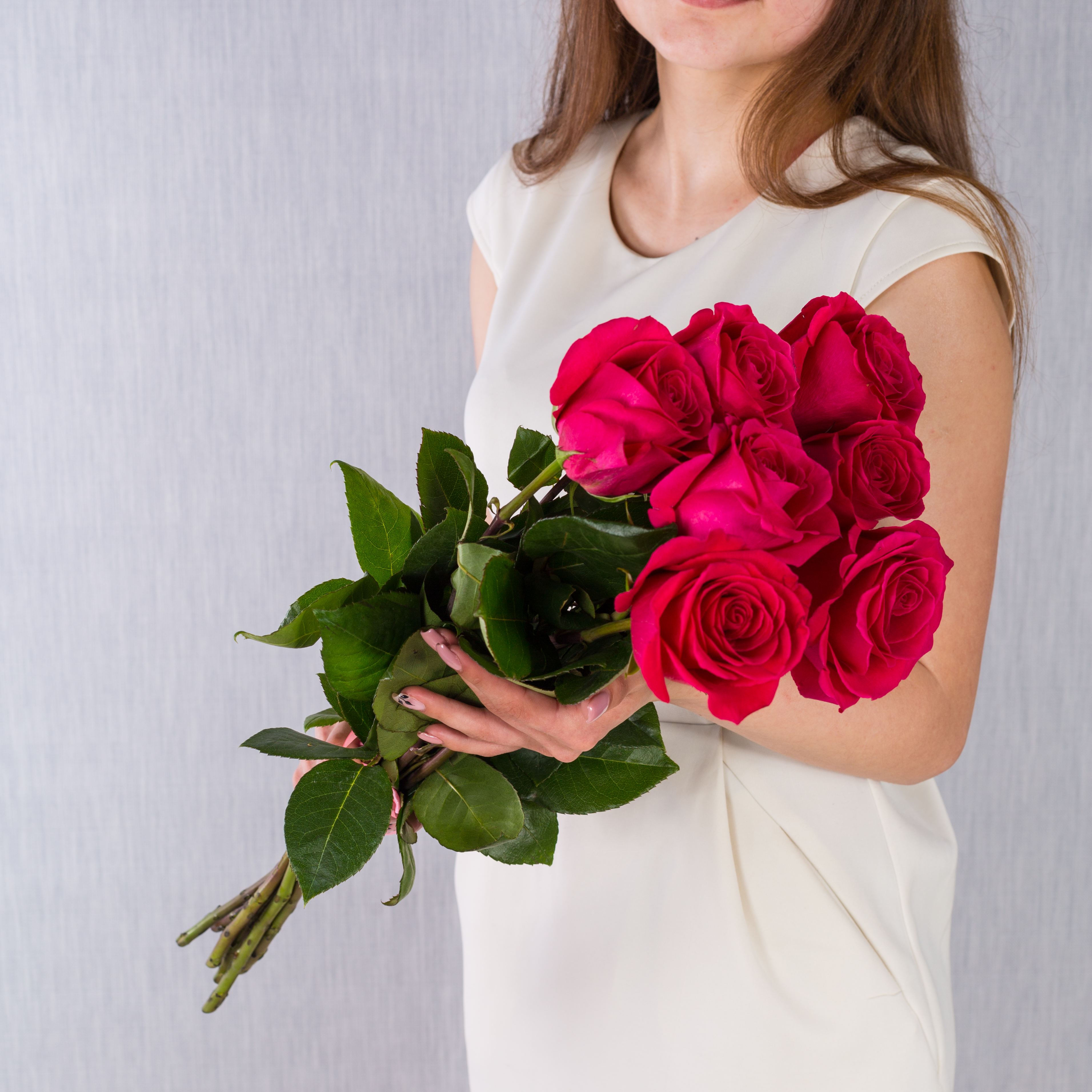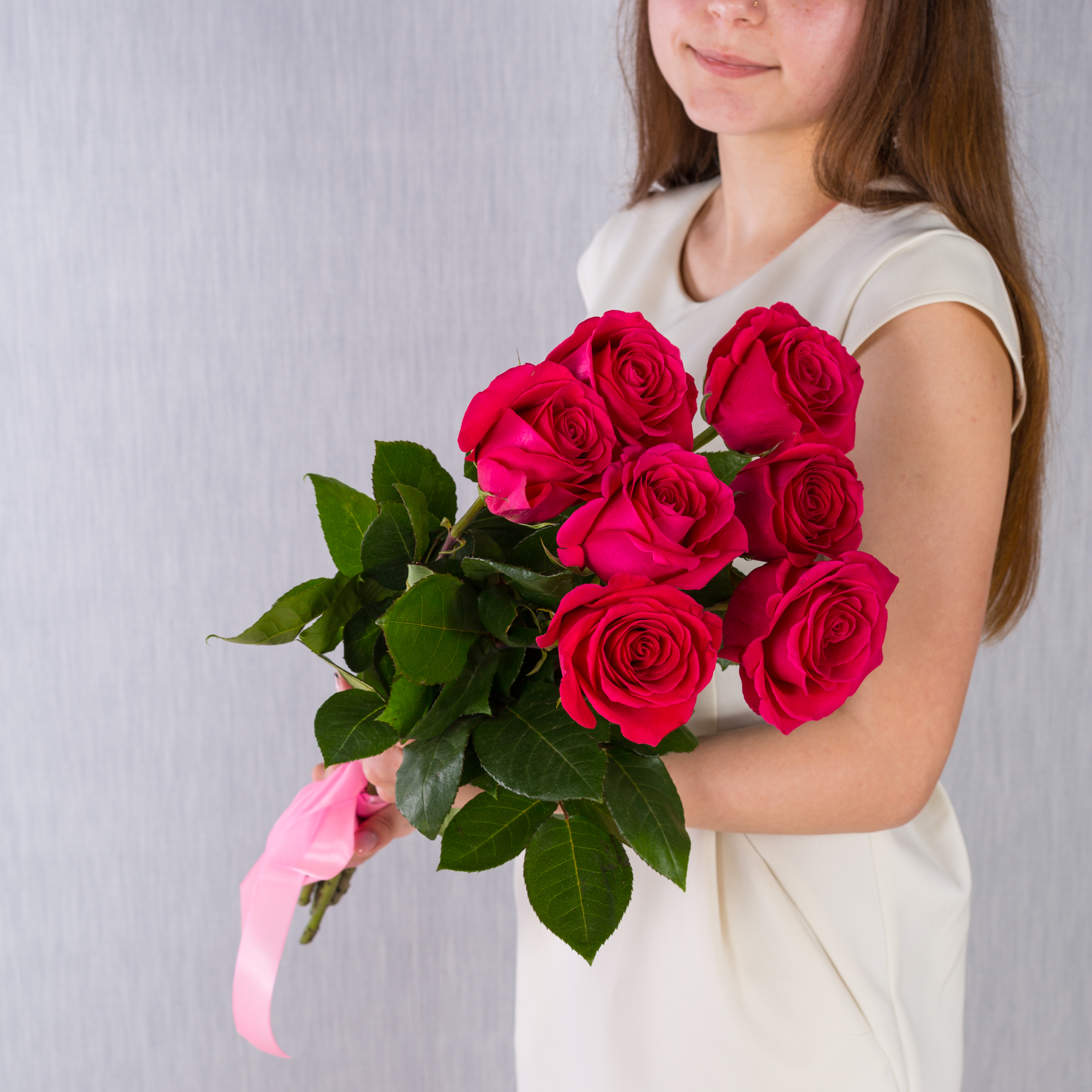 Букет из 7 розовых роз с крупным бутоном 60 см. арт. 36400