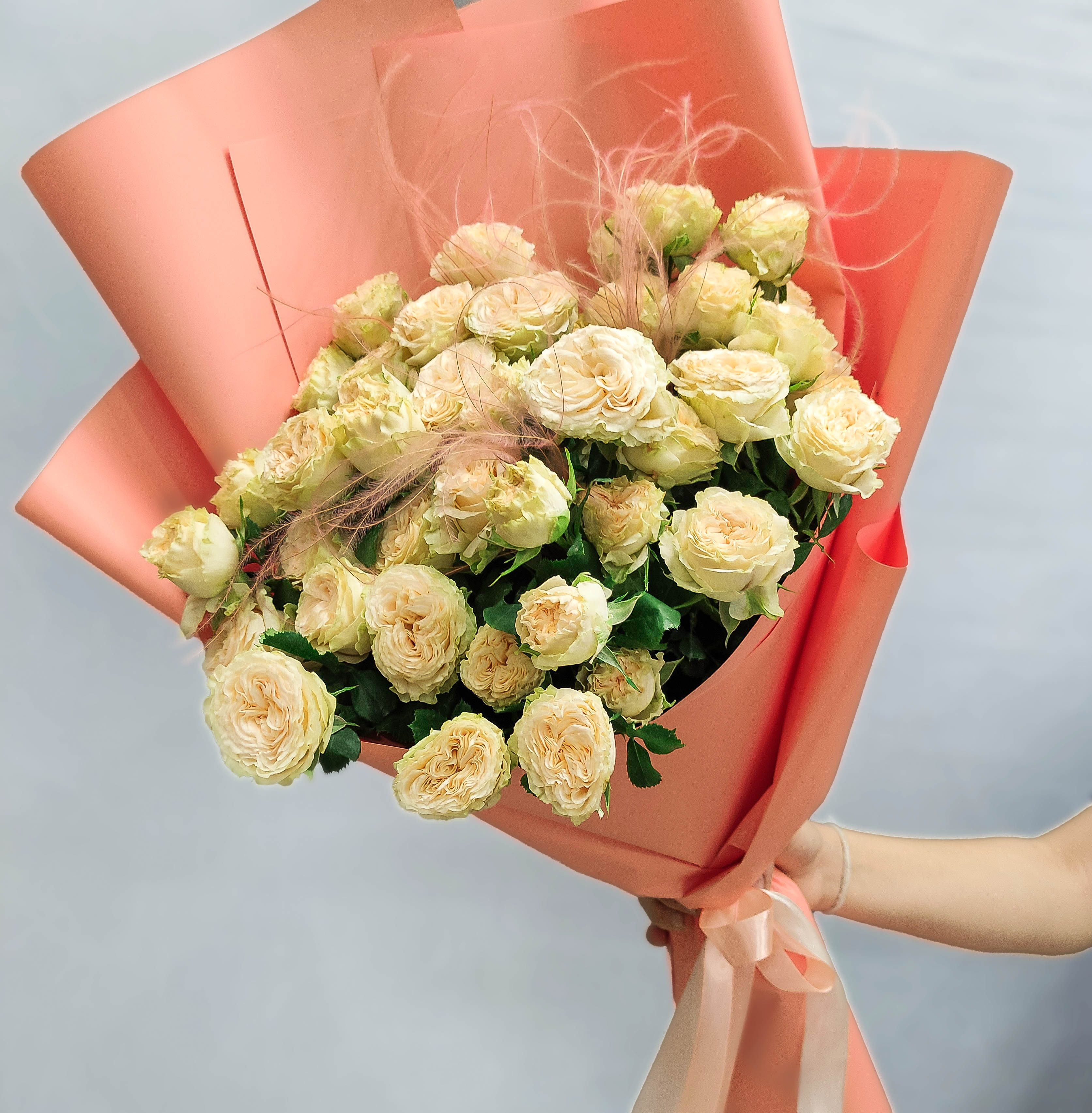 Букет из кустовых пионовидных роз кремового цвета арт. 47537