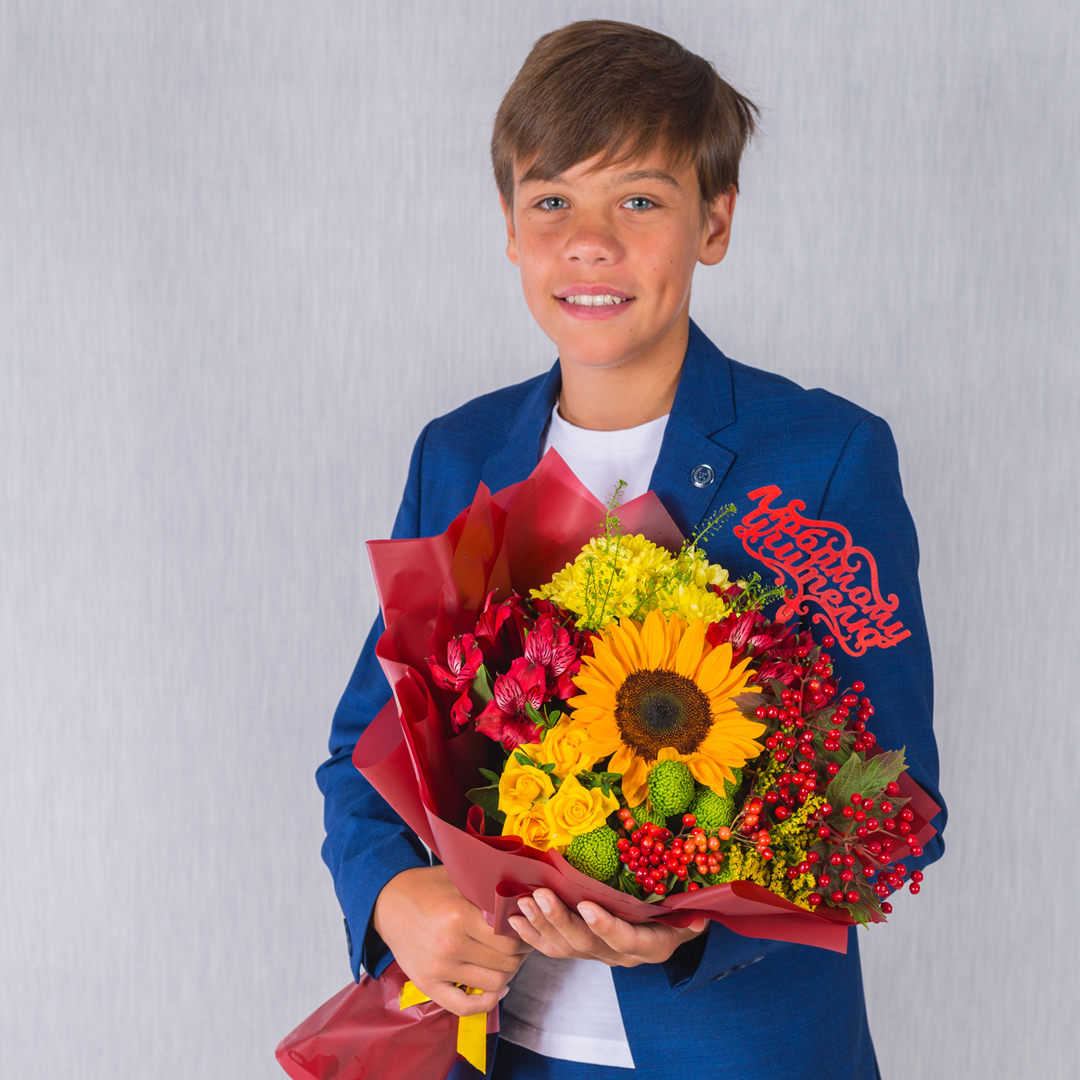 Букет "Школьник" из кустовой хризантемы и гермини. арт. 6957