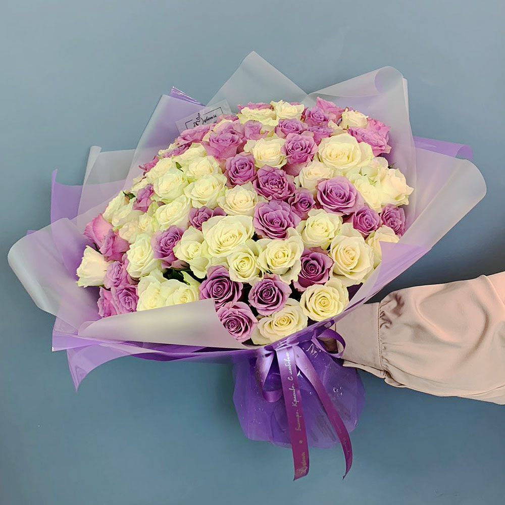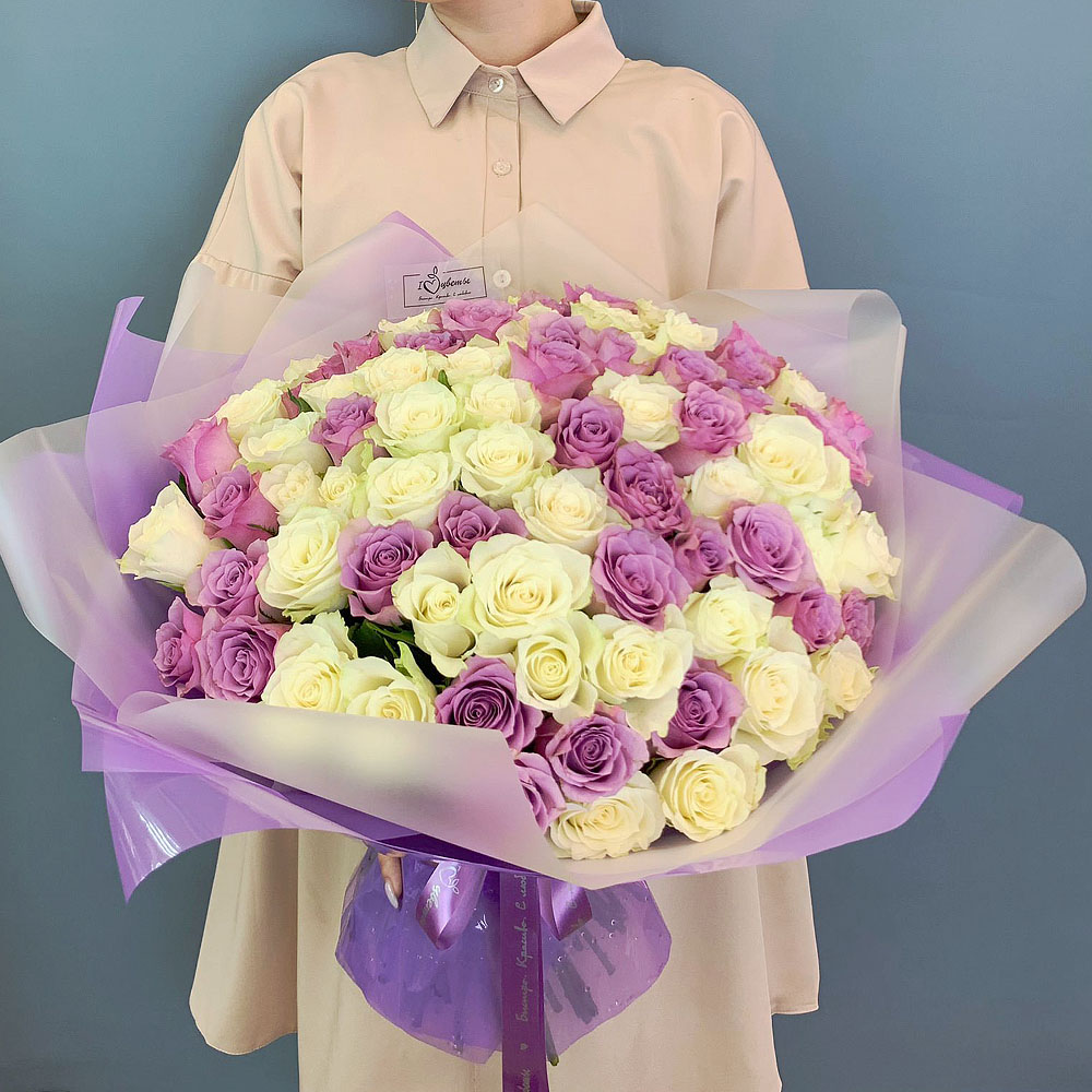 Букет 101 красно-белая роза Кения в упаковке арт. 29178-Р