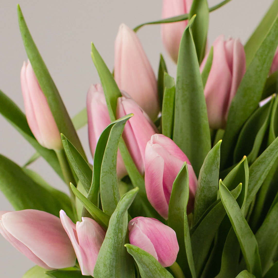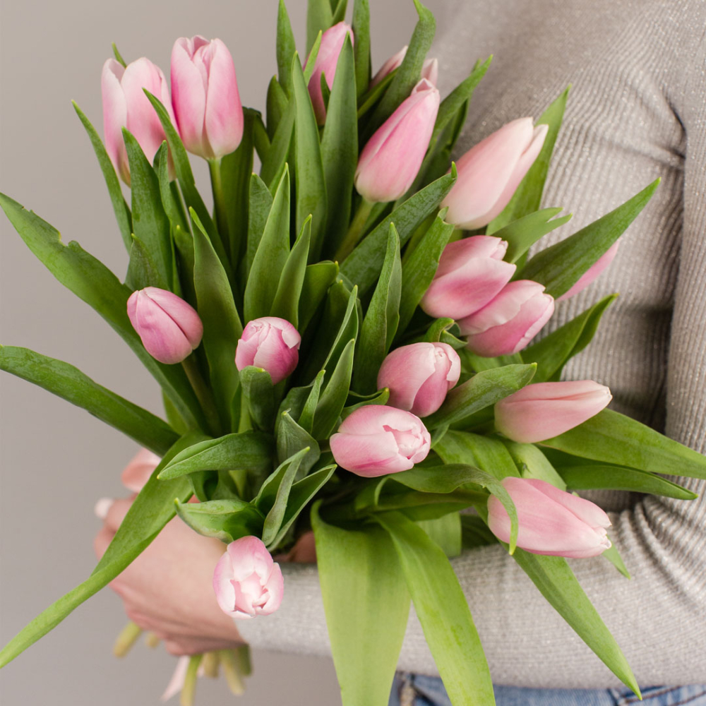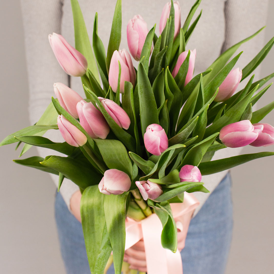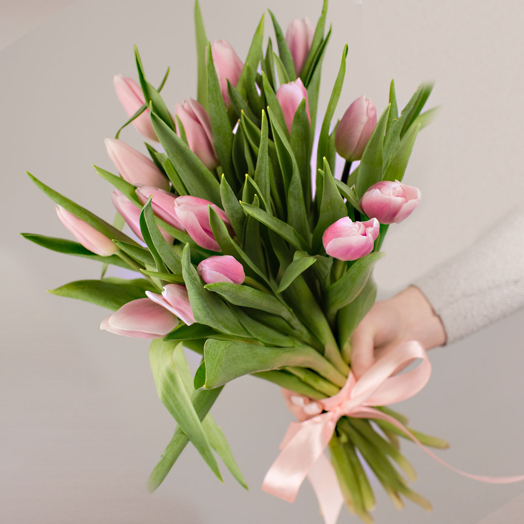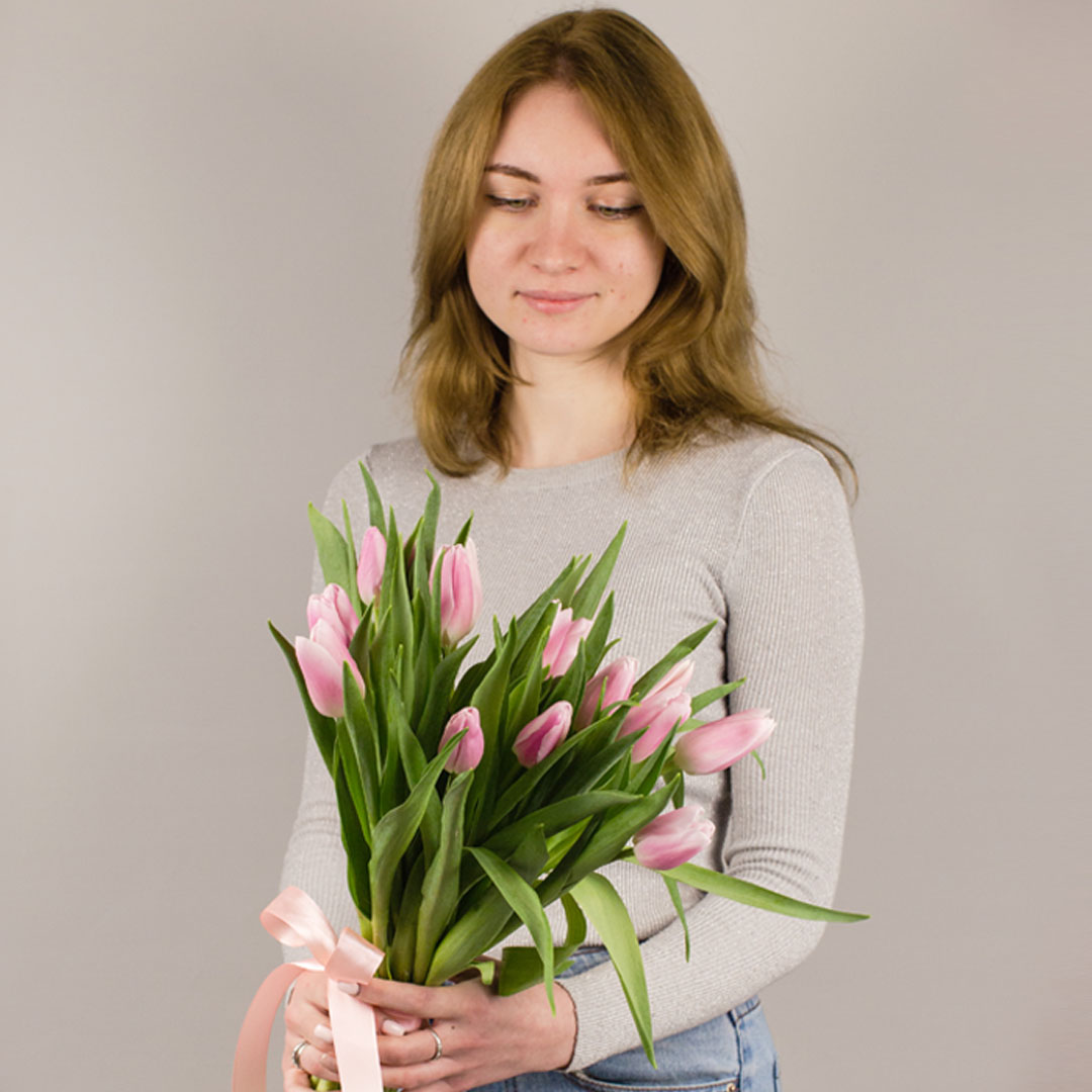 Тюльпаны розовые 15 шт. с лентой (без упаковки) арт. 28774