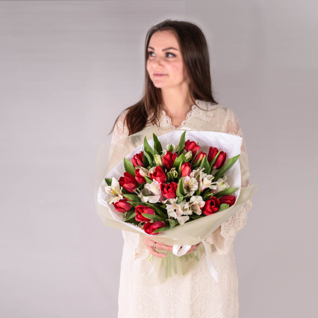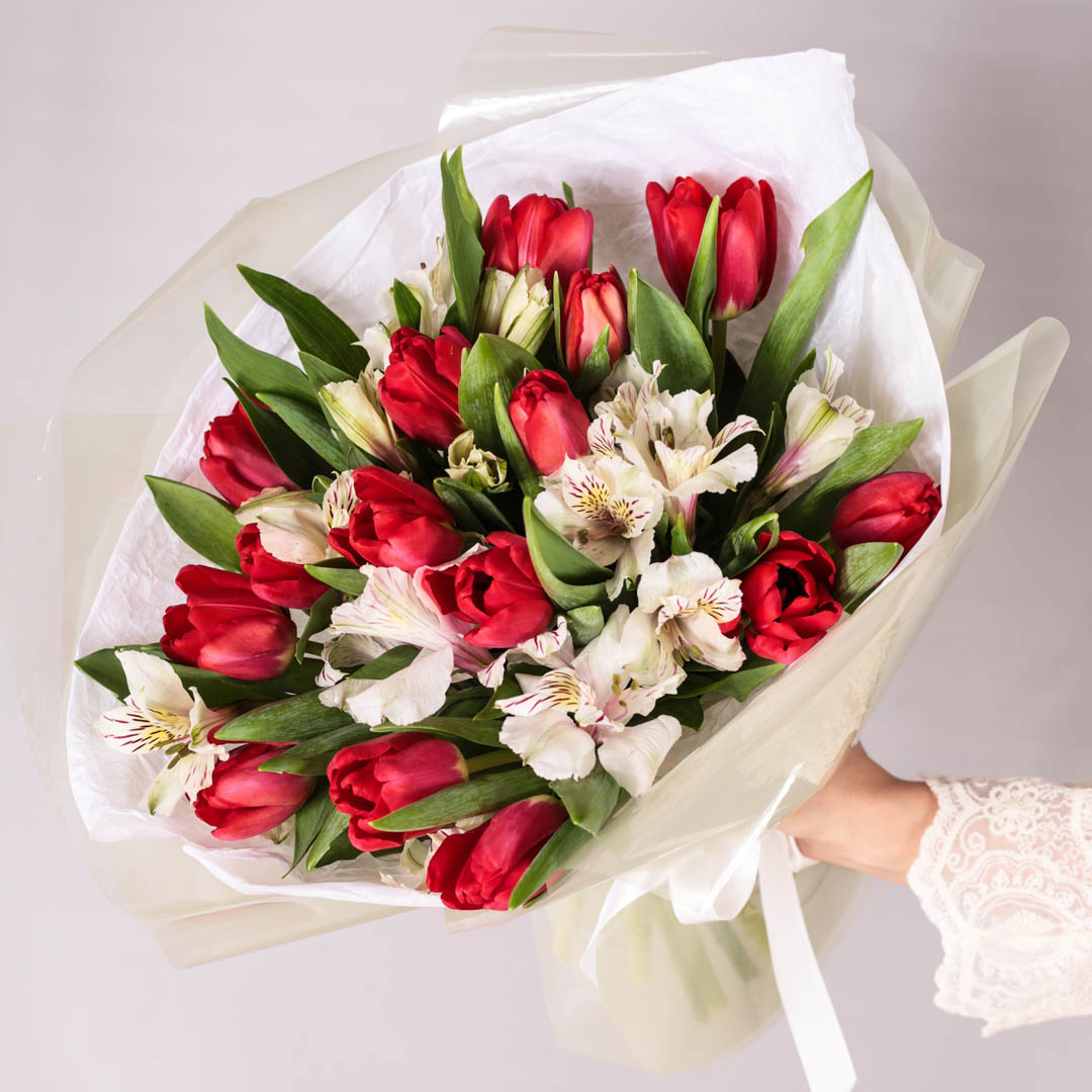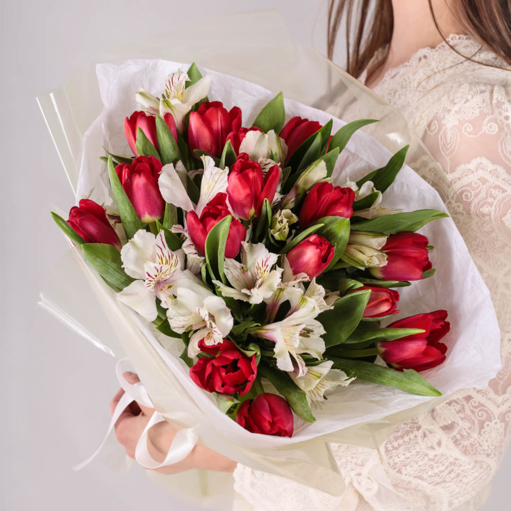 Букет из тюльпанов с альстромерией арт. 46173