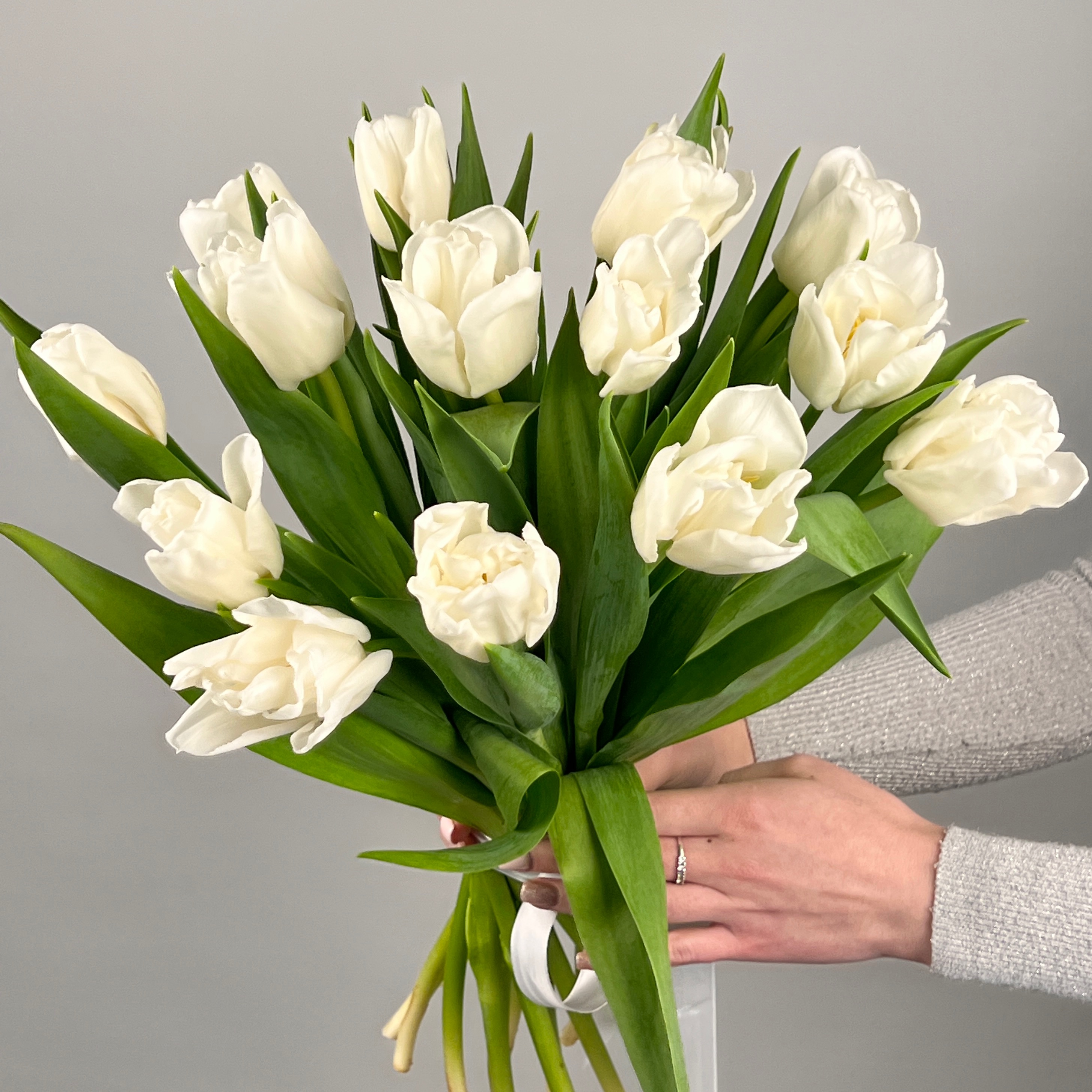 Букет из 15 пионовидных белых тюльпанов арт. 46325