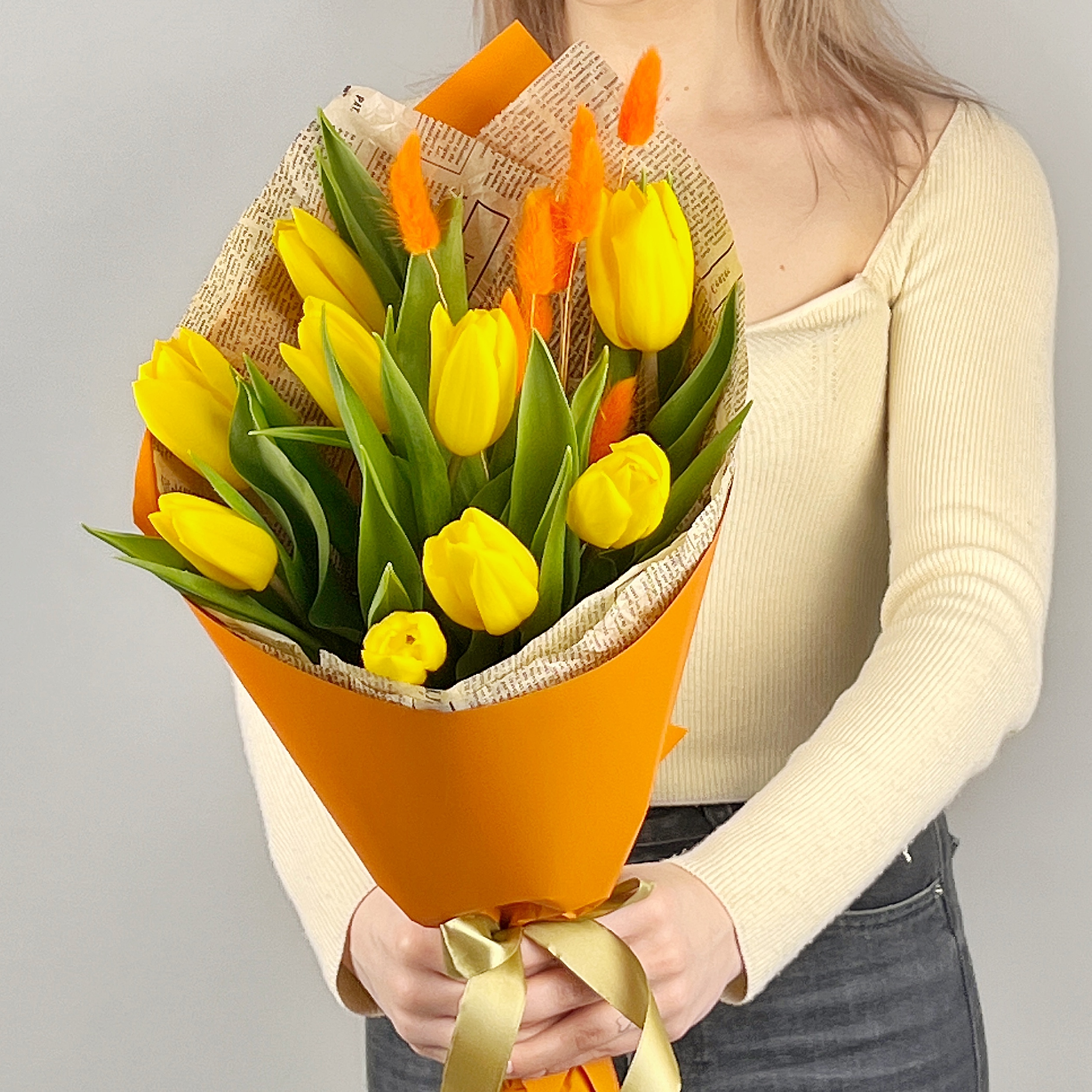 Букет из желтых тюльпанов с лагурусом арт. 46461-Ж