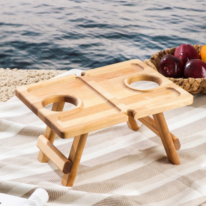 Столик-поднос для вина с менажницей и складными ножками Adelica, прямоугольный, на 2 персоны, берёза