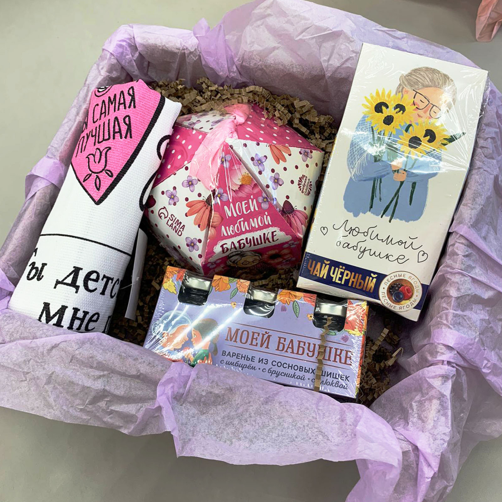 Подарочный набор "Любимой бабушке" чай, конфеты, варенье, полотенце арт. 59831