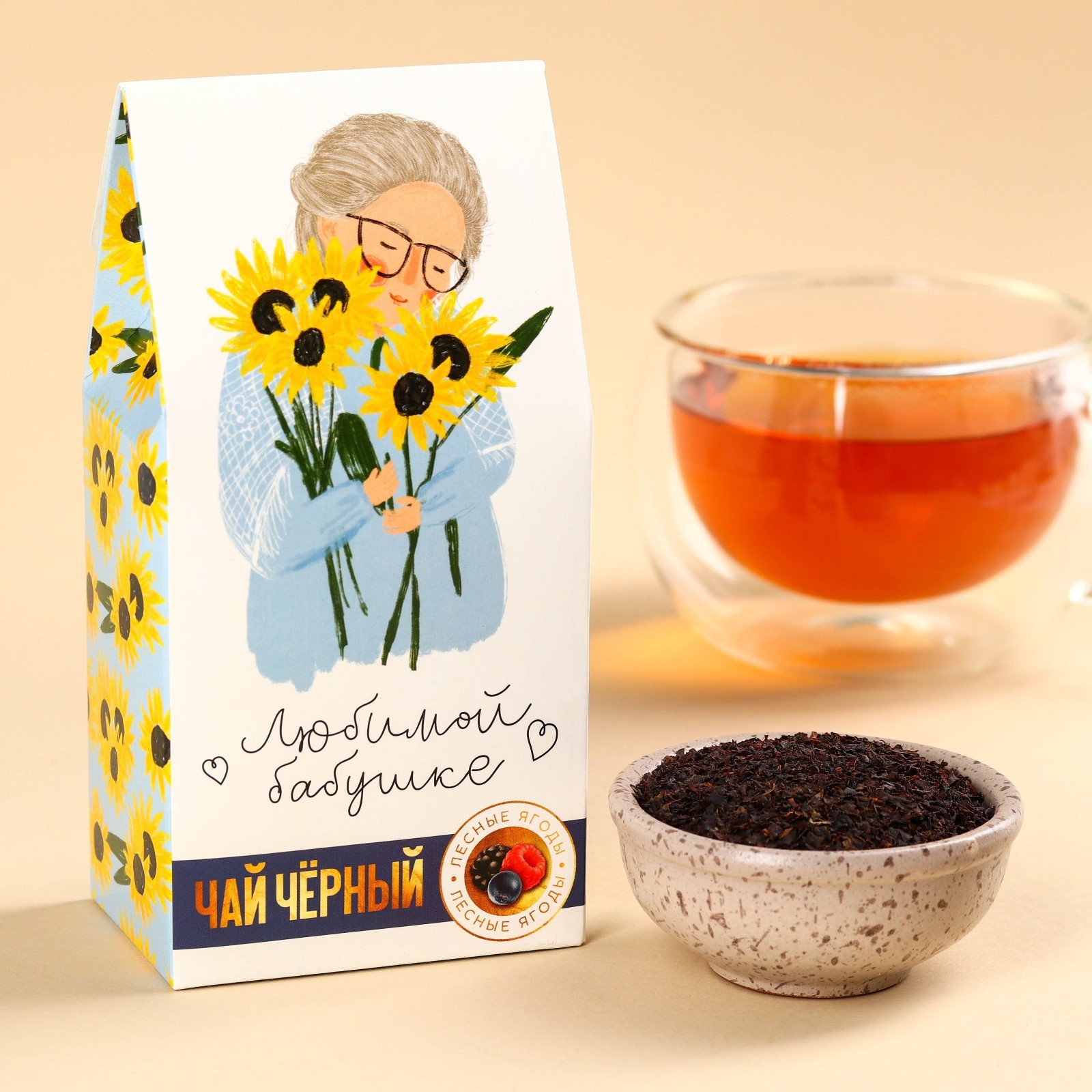 1. Чай черный байховый «Любимой бабушке», вкус: лесные ягоды, 50 г.
