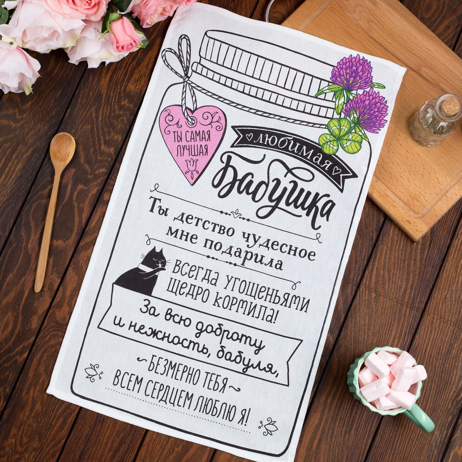 3. Полотенце кухонное «Любимая бабушка» 34х60 см, рогожка, 100% хлопок 160 гр/м
