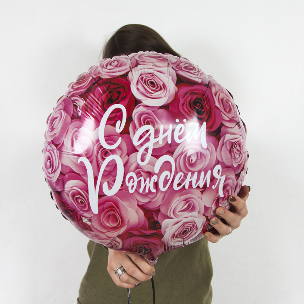 Шар "С днем рождения" круглый с розами 18" (48 см) арт. 8144